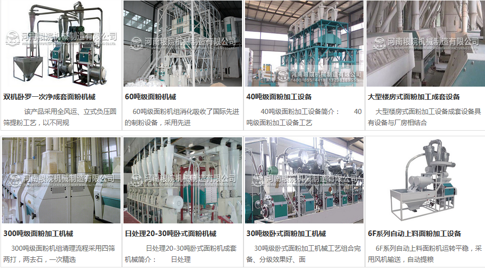 上面是开办面粉厂所需要的面粉加工机械,各种类型,各种吨位的都有,详细地址://safeyz.com/MianFenJi/